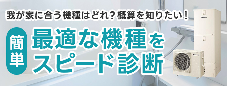 ご家族の人数や設置タイプを選ぶだけで、ご自宅に最適なエコキュートの概算費用が最短10秒でわかります。