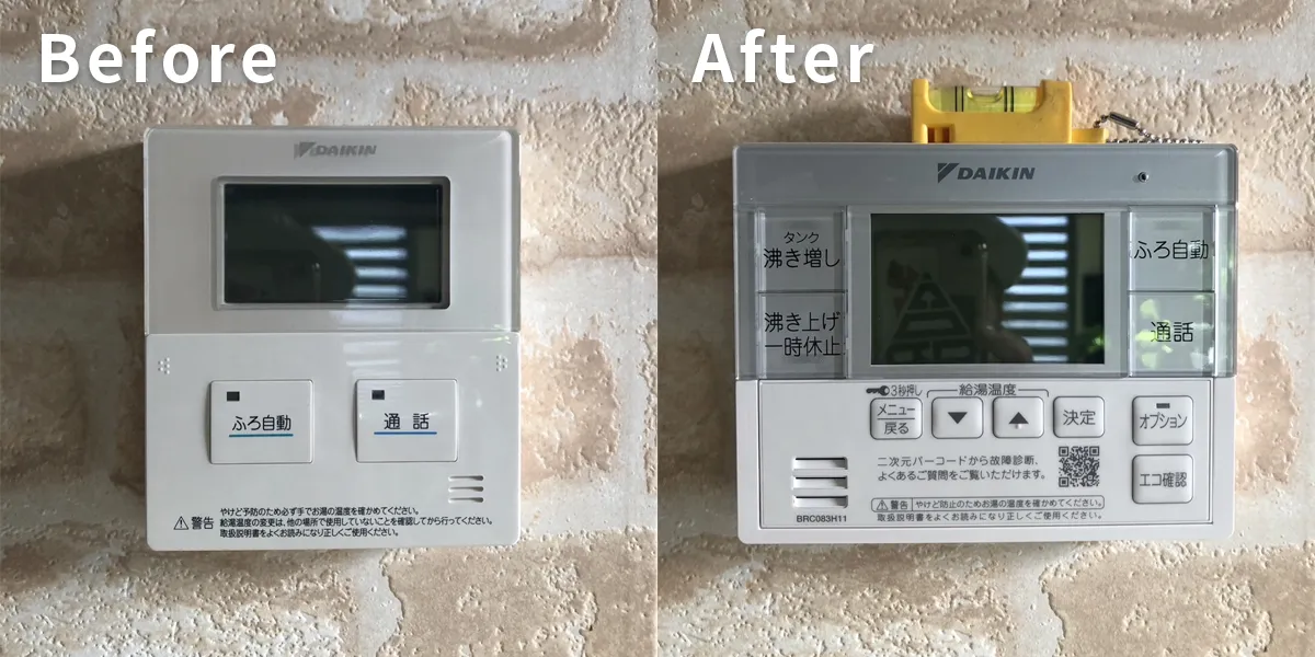 見た目はそこまで変わりませんが、経年劣化した内部の部品や配管も全て新品に交換しているので、またこれから長く安心して給湯器をお使いいただけます。