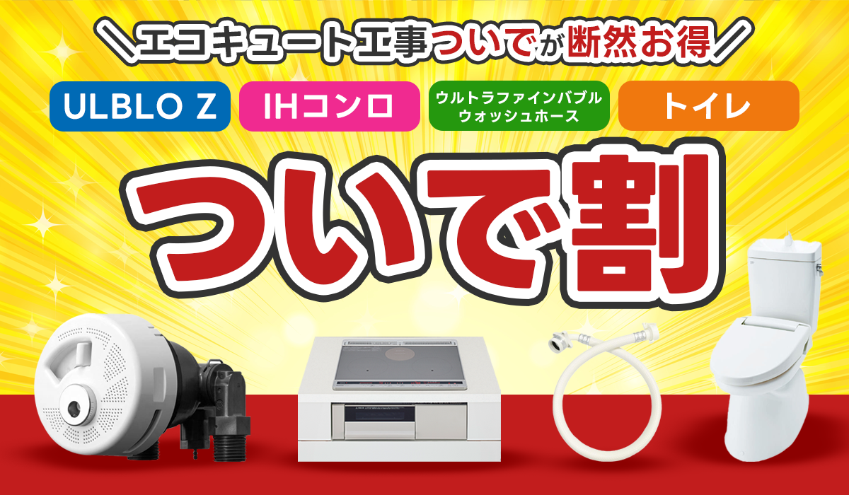 Coolsでは、エコキュートをご成約者いただいたお客様限定で特別価格で住宅関連設備をご購入いただける「ついで割」をご用意しております。