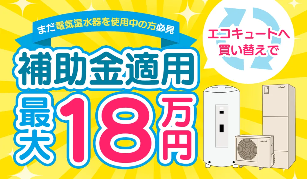 【2024年度版】電気温水器からエコキュートへの買い替えで補助金適用最大18万円適用!