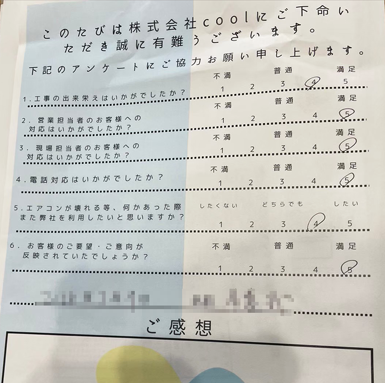 お客様アンケートにもご回答をいただきました!ありがとうございます。