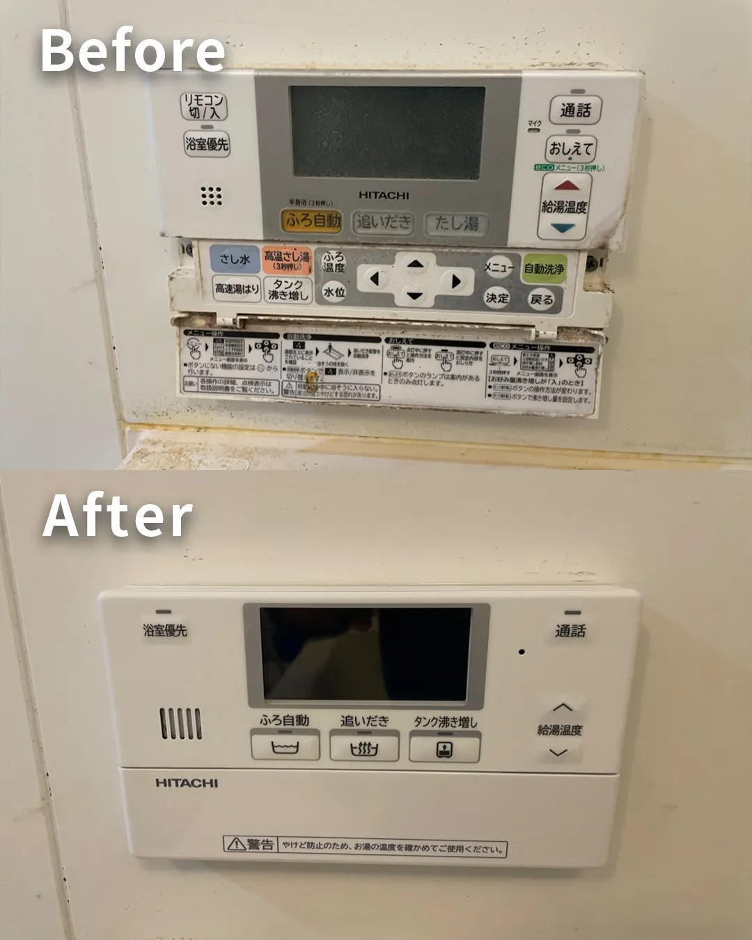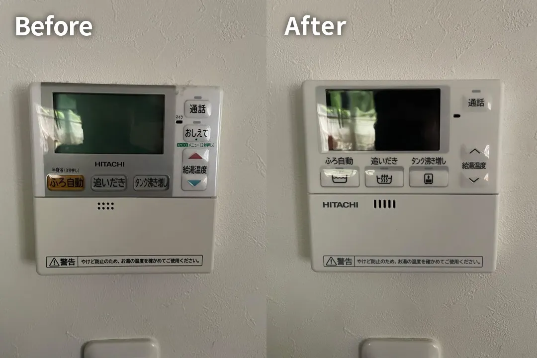 長年の使用でボロボロになってしまった浴室とキッチンのリモコンも新しく付け替えました。