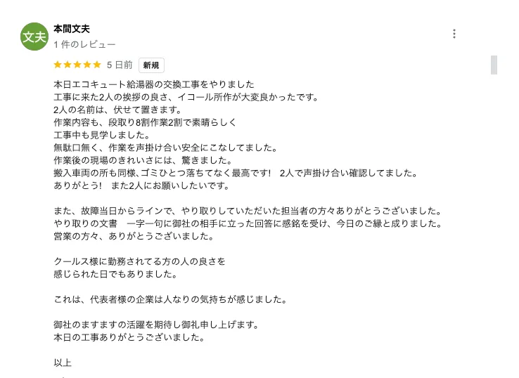 実際にCoolsで交換工事を行ってくださったお客様からの嬉しいお言葉もたくさん届いていますので、一部ご紹介させていただきます。