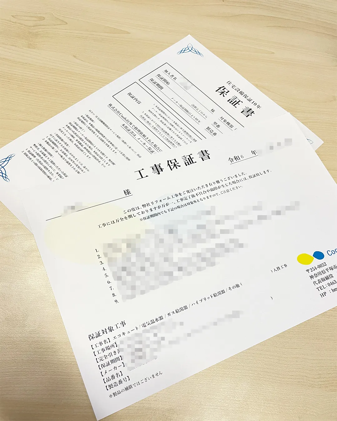 株式会社Coolsでは、工事していただいた方にはこのようにしっかりとした保証書をお渡しさせていただいております。