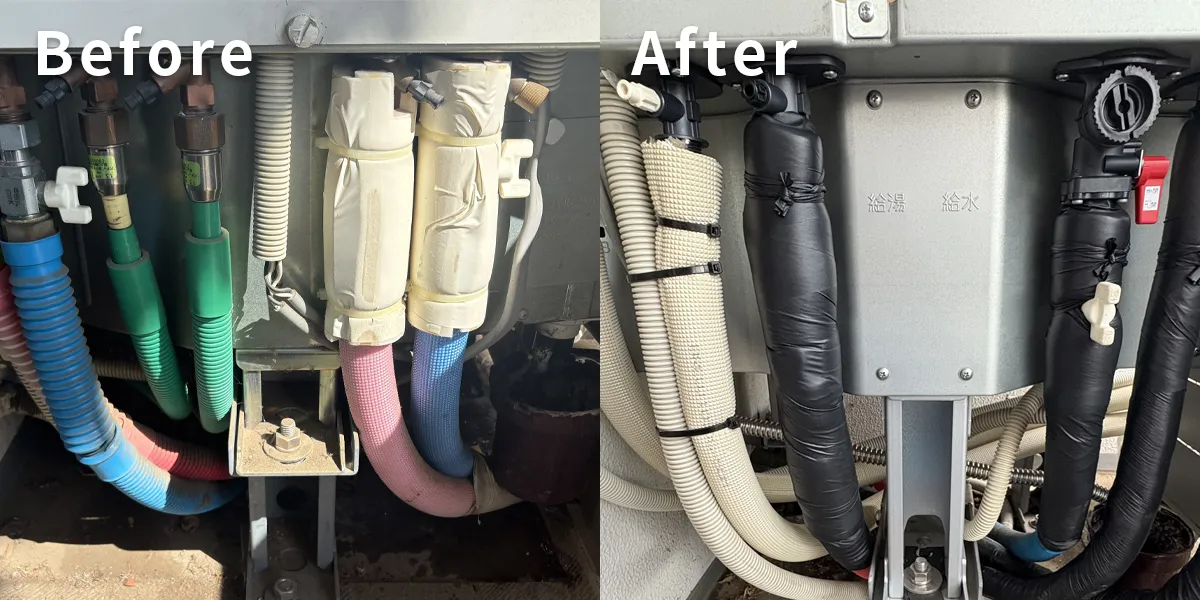 配管カバーでしっかり保護&固定し、長く安心して使っていただけるよう丁寧に施工しております。