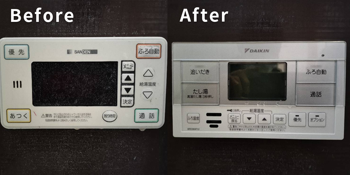 浴室とキッチンのリモコンも、新品に交換。