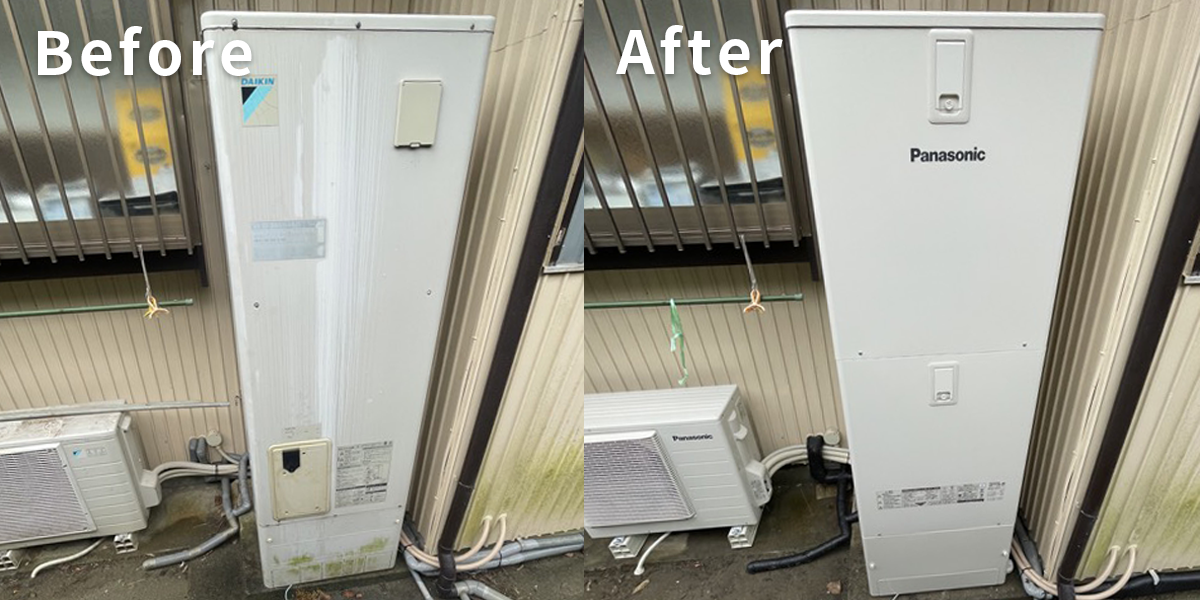今回は、ダイキン製エコキュート【EQ37LFCV】からパナソニック製エコキュート【HE-S37LQS】への施工事例をご紹介しました!