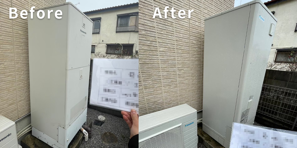 今回は、パナソニック製エコキュート【HE-370SFQS】からダイキン製エコキュート【EQX37XFV】への交換工事の事例をご紹介しました。
