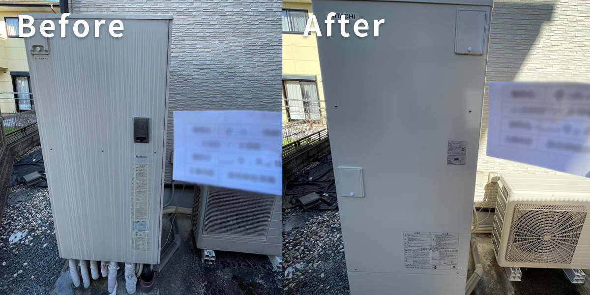 今回は、National製【HE-37K2QK】から日立【BHP-FG37WU】への交換工事の事例をご紹介しました。