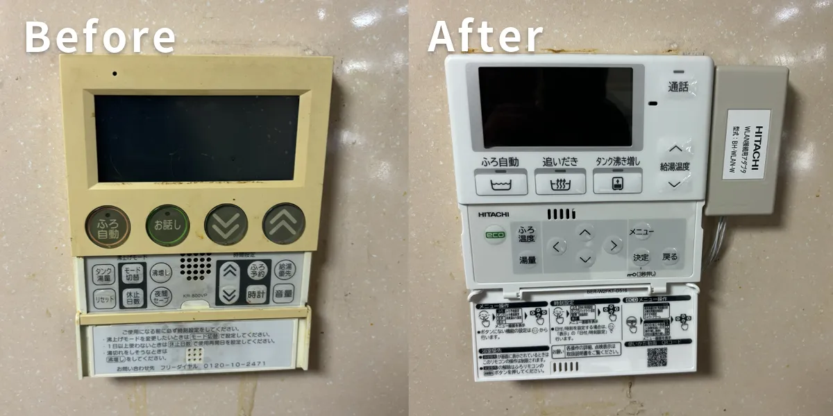 清潔感のある白い日立製リモコンに交換しました!