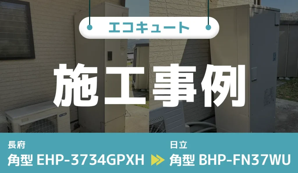 エコキュート交換専門店│株式会社Coolsの実際の施工事例をご紹介!岡山県加賀郡のお客様からのご依頼で、長府【EHP-3734GPXH】から日立【BHP-FN37WU】へ交換いたしました。 -