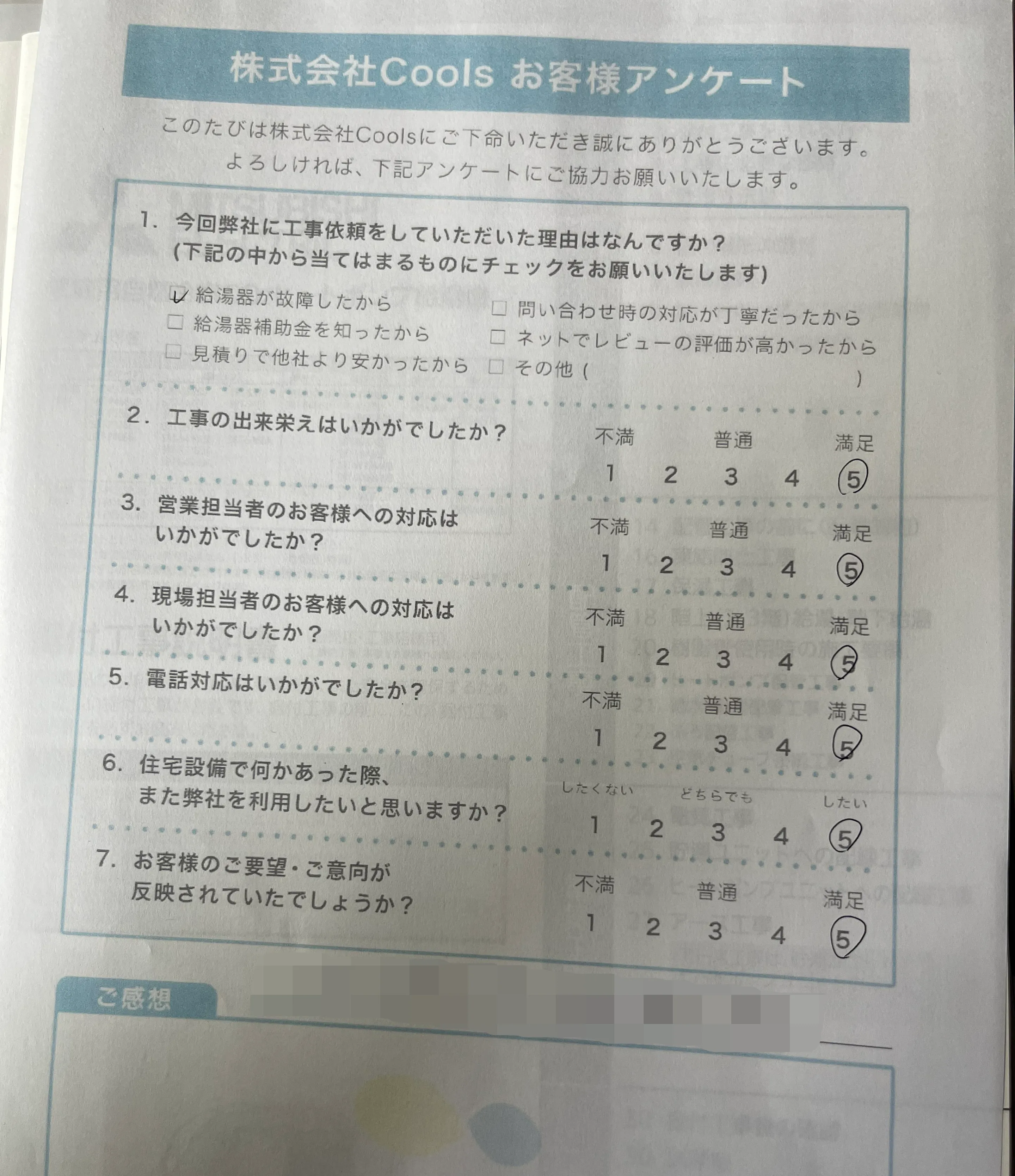 工事の出来栄えやお客様への対応など、ご満足をいただけたようで大変うれしく思います!