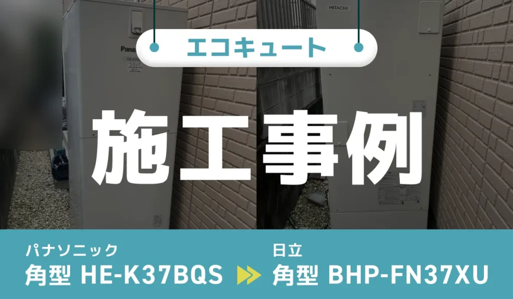 エコキュート専門店Coolsの実際の交換工事の様子をご紹介!広島県福山市にお住いのお客様からのご依頼で、パナソニック【HE-K37BQS】から日立【BHP-FN37XU】へ交換いたしました。