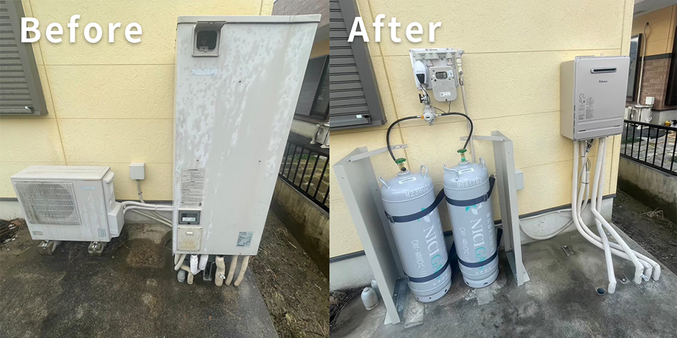 今回は、三菱製エコキュート【SRT-HP37W1】からパロマ製ガス給湯器【FH-2423SAW】への交換事例をご紹介しました。
